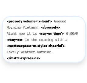 Configure flow of the speech & text with SSML tags and tones